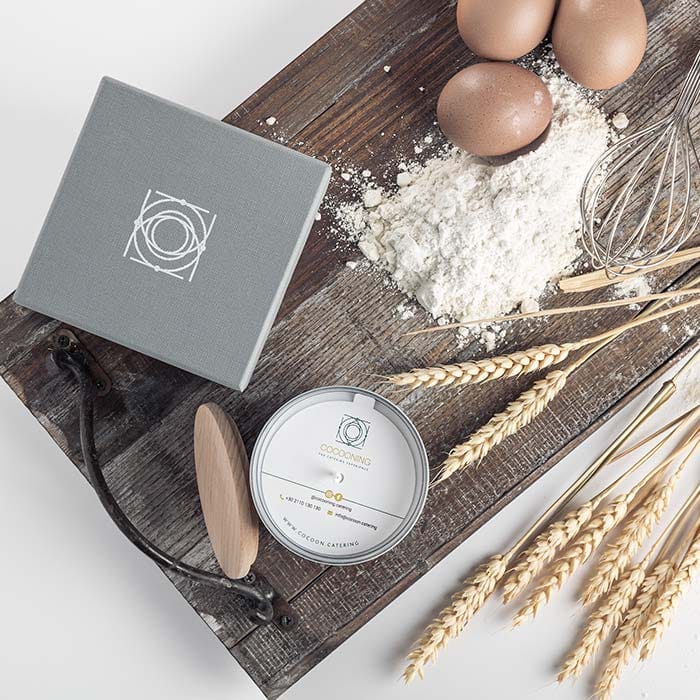 Η Cocooning The Catering Experience, με παρουσία σε Αθήνα και Μύκονο, προσφέρει υπηρεσίες catering υψηλής αισθητικής. Δημιουργήσαμε για εκείνους ένα custom κερί με πολυτελή συσκευασία που αντανακλά το εκλεπτυσμένο ύφος και τη φιλοσοφία της εμπειρίας που προσφέρουν στους πελάτες τους.