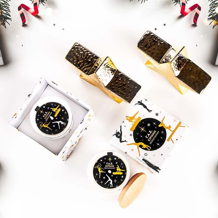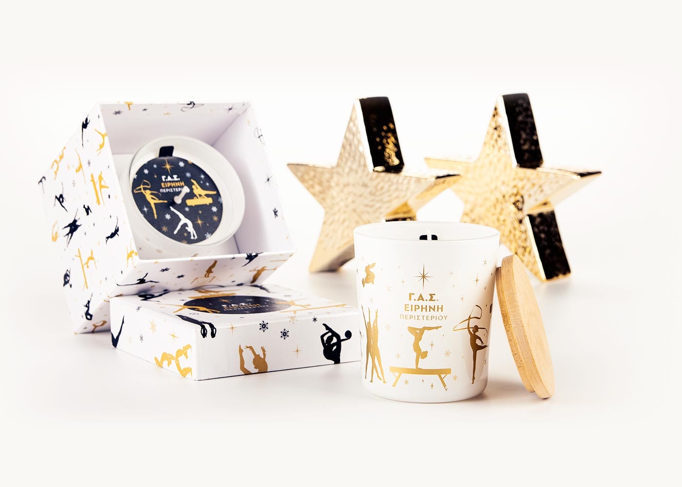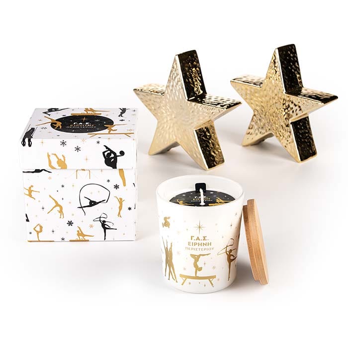 Με στόχο την ενίσχυση των αποστολών της ομάδας ακροβατικής γυμναστικής του συλλόγου ΓΑΣ Ειρήνη Περιστερίου σε διεθνείς διοργανώσεις, δημιουργήσαμε και προσφέραμε μια συλλογή από branded αρωματικά κεριά με το έμβλημα του συλλόγου.
