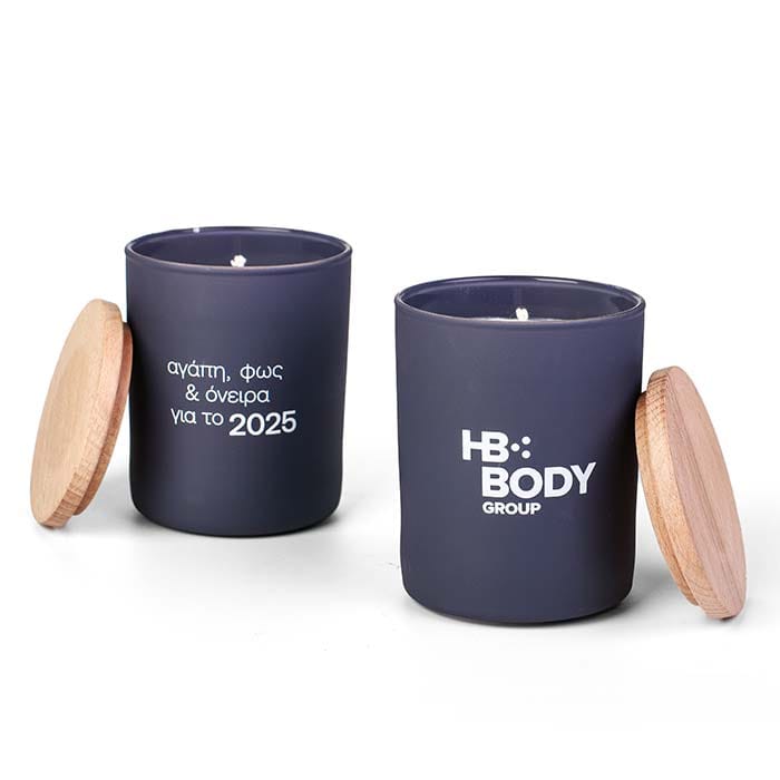 Κερί με ξύλινο καπάκι και χρωματολόγιο φόντου.