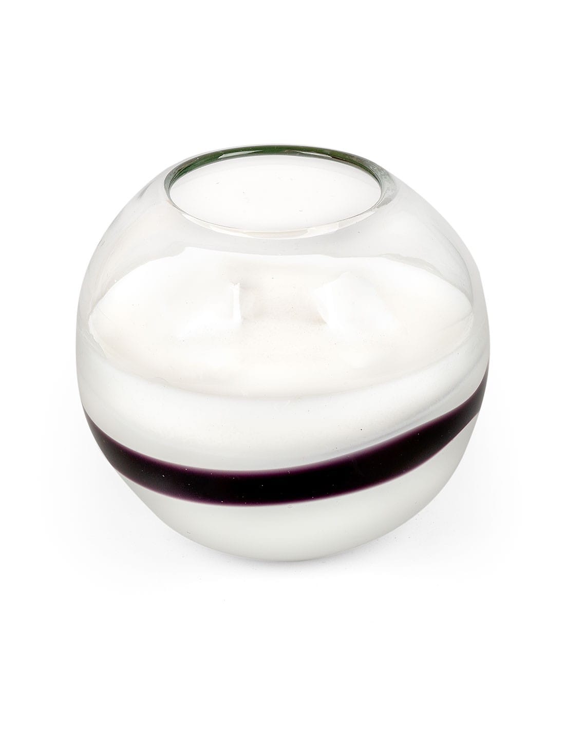 Κηροπήγιο μεγάλου μεγέθους σε σχήμα σφαίρας σε διάφανο χρώμα με μπορντώ γραμμή και φυτικό αρωματικό κερί