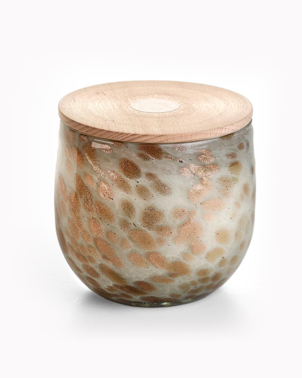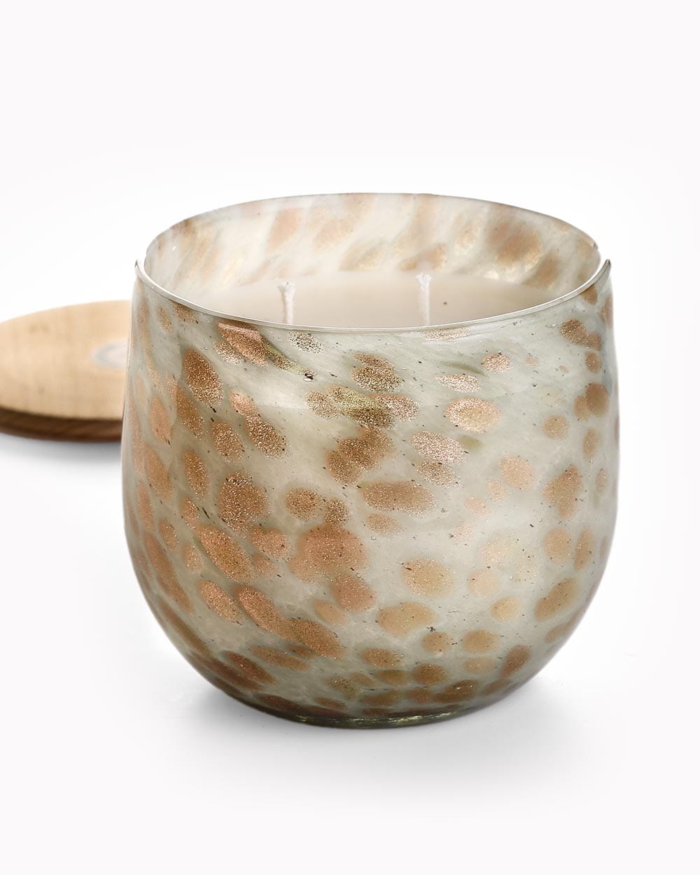 Δοχείο από φυσητό γυαλί σε dusty χρώμα μέντας και χρυσές πινελιές με αρωματικό φυτικό κερί σόγιας