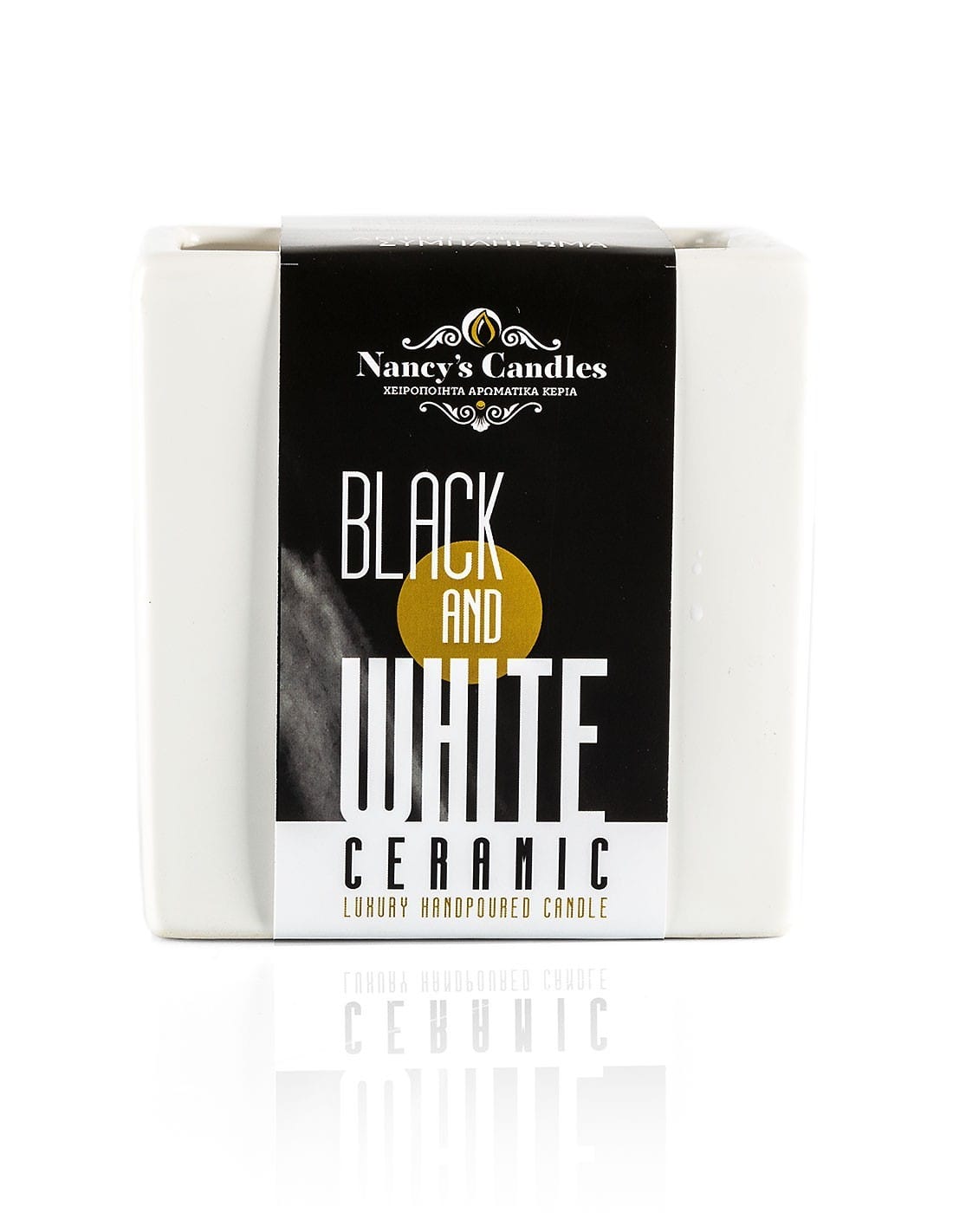 Κεραμικά τετράγωνα δοχεία της σειράς Black & White Cubes σε λευκό χρώμα και αρωματικό φυτικό κερί