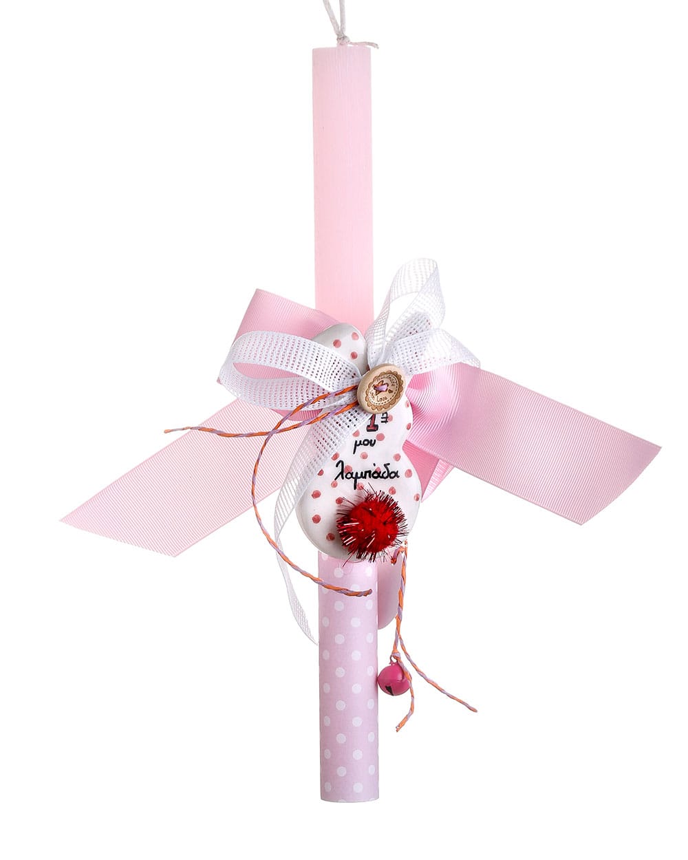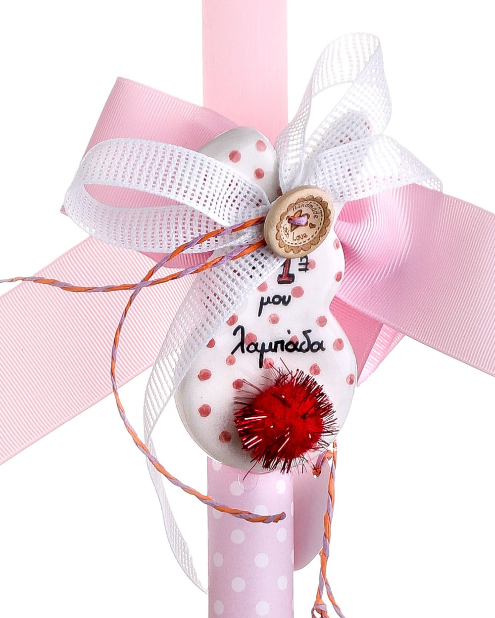 Η πρώτη μου λαμπάδα με κεραμικό κρεμαστό λαγουδάκι (ροζ πουά)