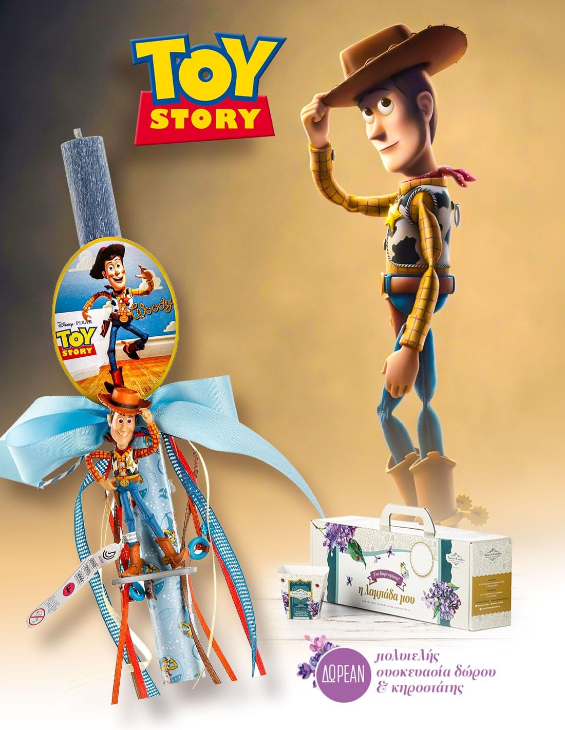• Αγορίστικη αρωματική λαμπάδα με αυθεντική φιγούρα Woody από την αγαπημένη ταινία Toy Story.