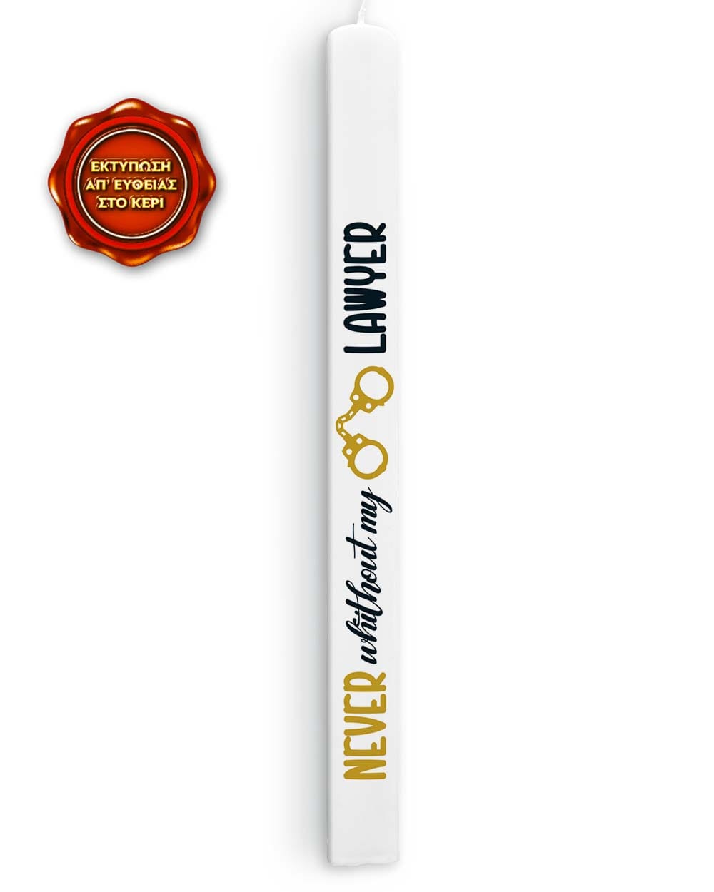 Γραφιστική λαμπάδα Never without my lawyer