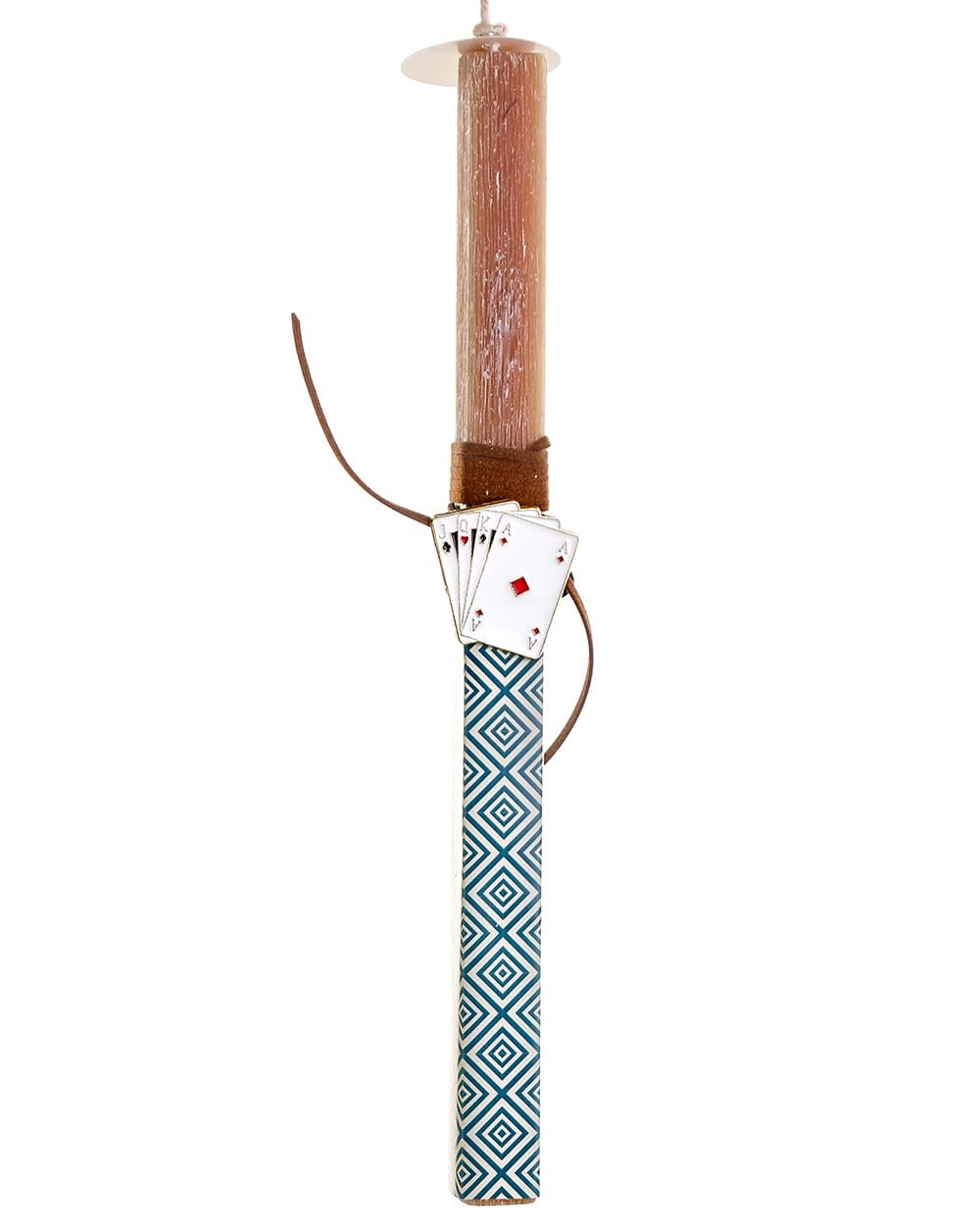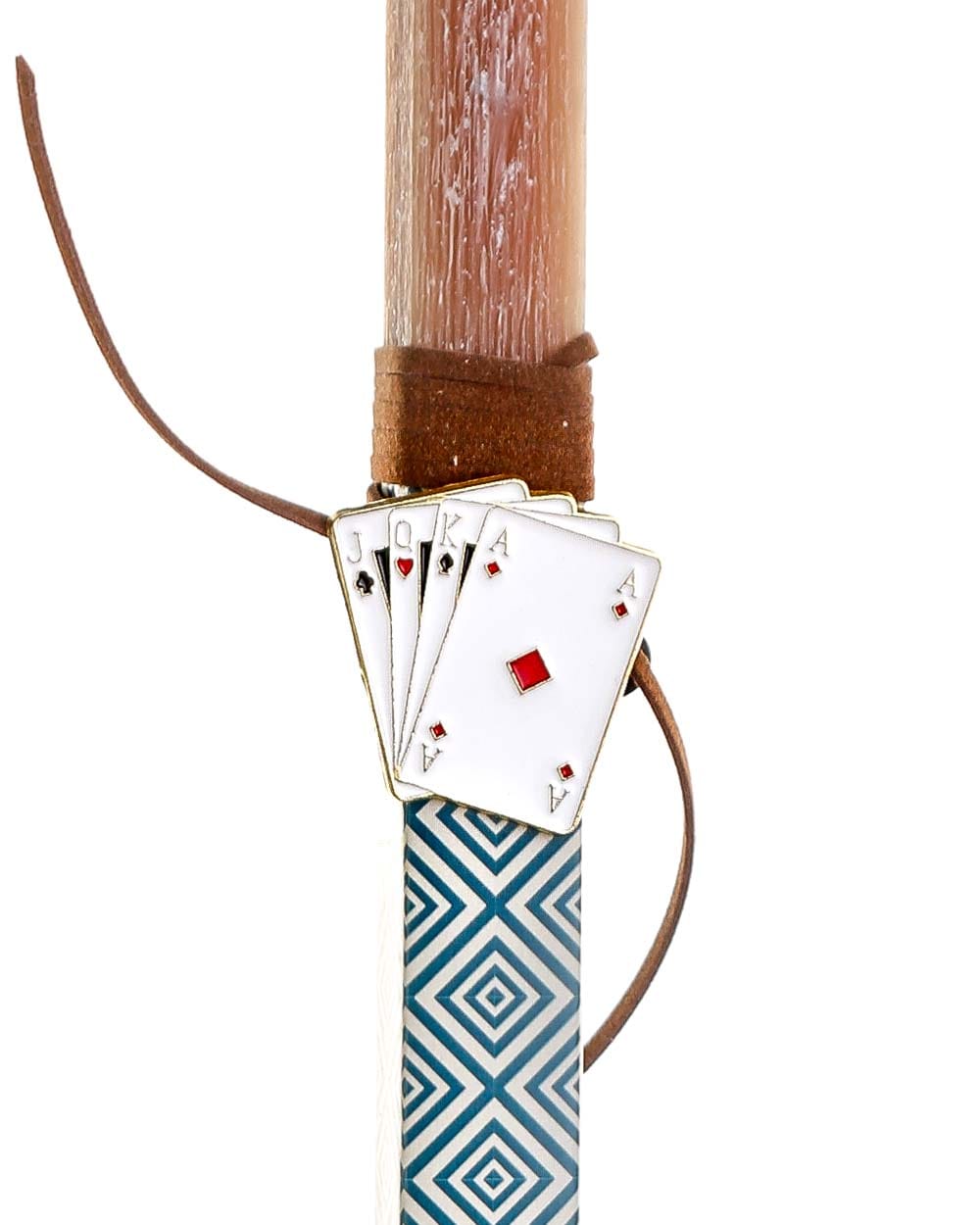 Χειροποίητη πασχαλινή λαμπάδα με καρφίτσα πέτου – Τραπουλόχαρτα