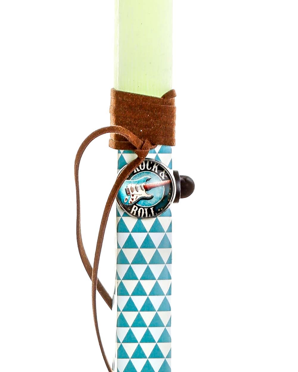 Χειροποίητη πασχαλινή λαμπάδα με καρφίτσα πέτου – Rock & Roll