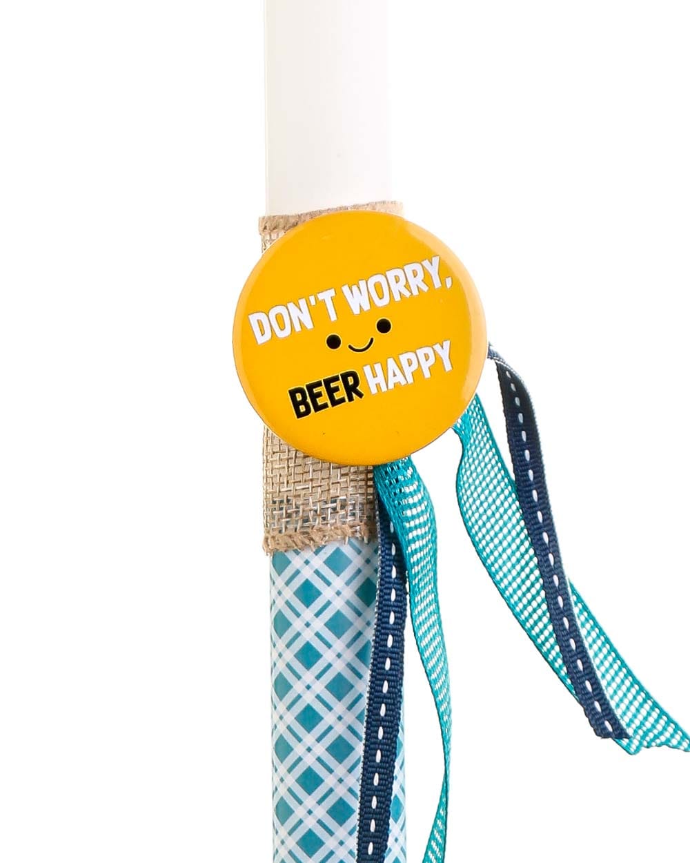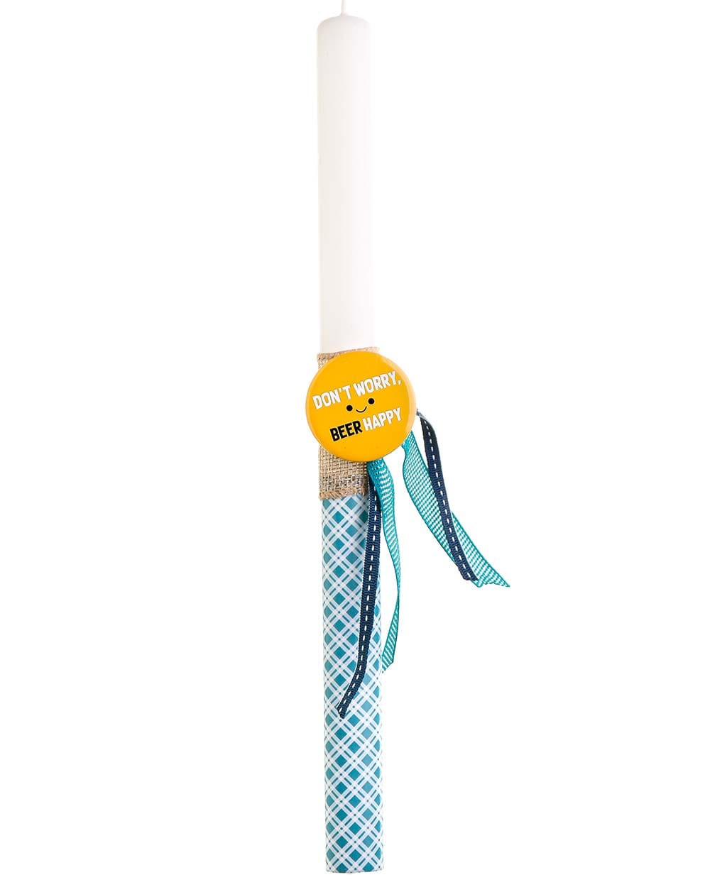 • Πασχαλινή λαμπάδα με κονκάρδα Don’t worry Beer happy