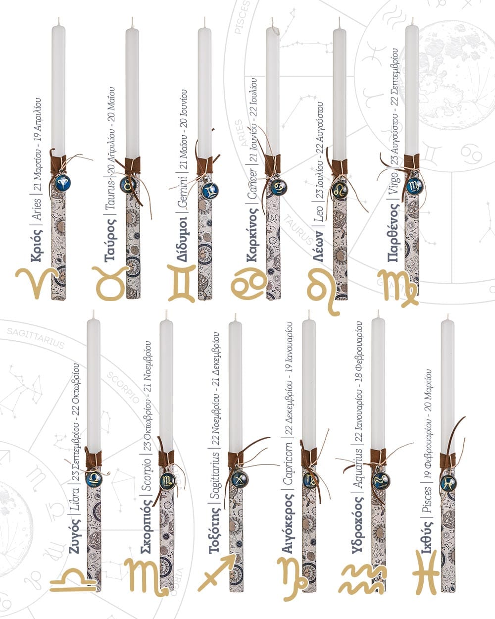 Χειροποίητη πασχαλινή λαμπάδα Ζώδια