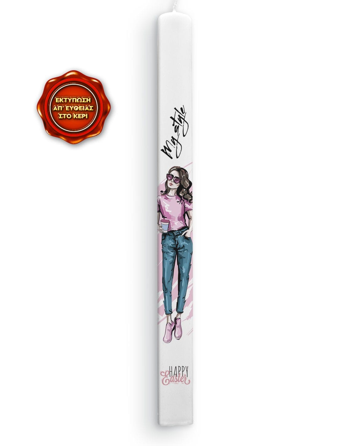 Πασχαλινή λαμπάδα για έφηβες και γυναίκες με εκτύπωση πάνω στο κερί.