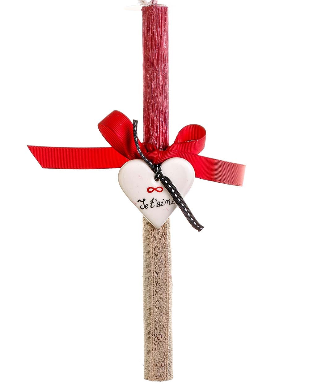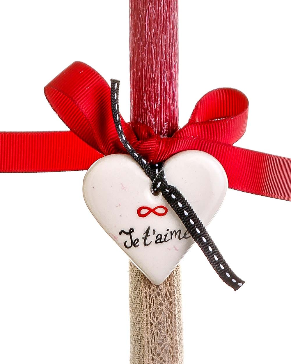 Χειροποίητη πασχαλινή λαμπάδα με κεραμική καρδούλα – Je t’aime