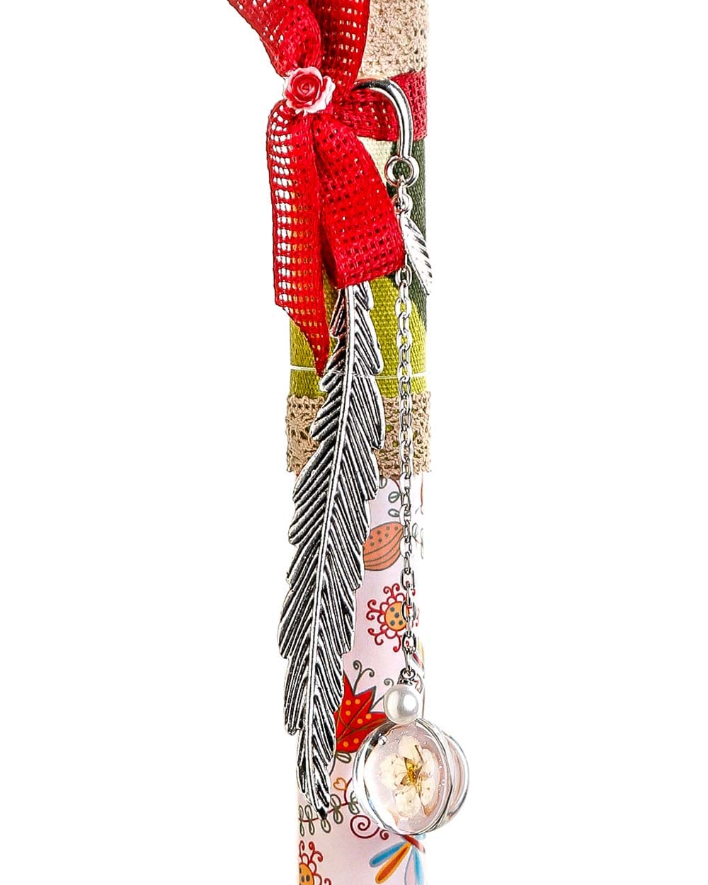 • Χειροποίητη πασχαλινή λαμπάδα διακοσμημένη με κομψό σελιδοδείκτη, ένα δώρο που συνδυάζει τη ζεστασιά της παράδοσης με την αγάπη για το διάβασμα.