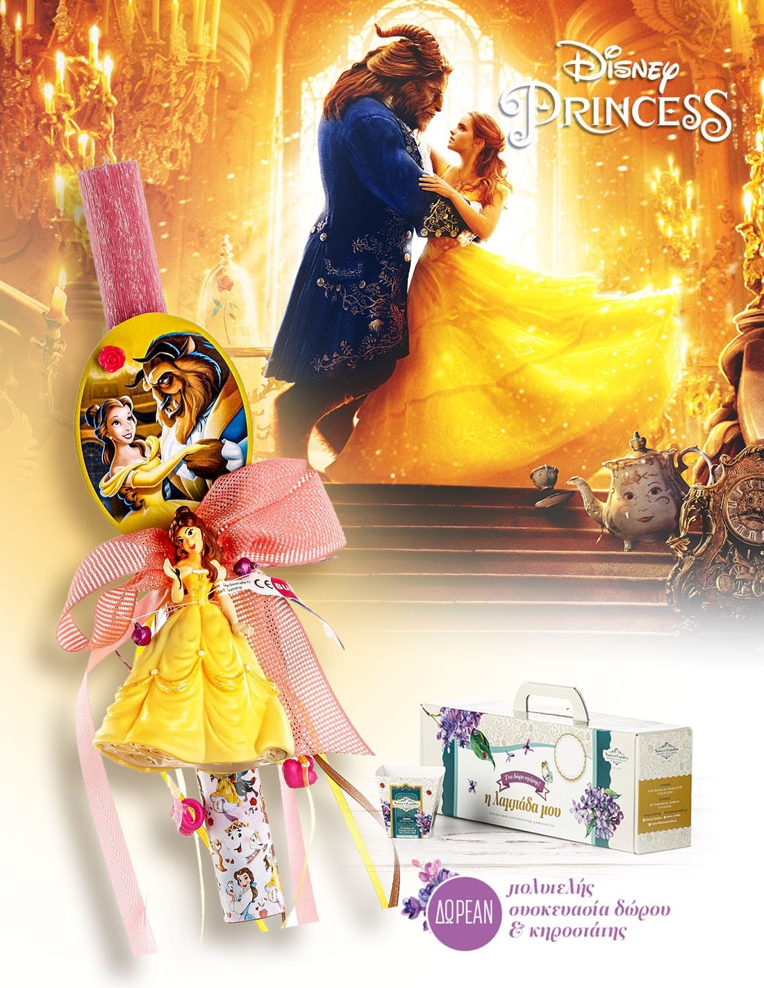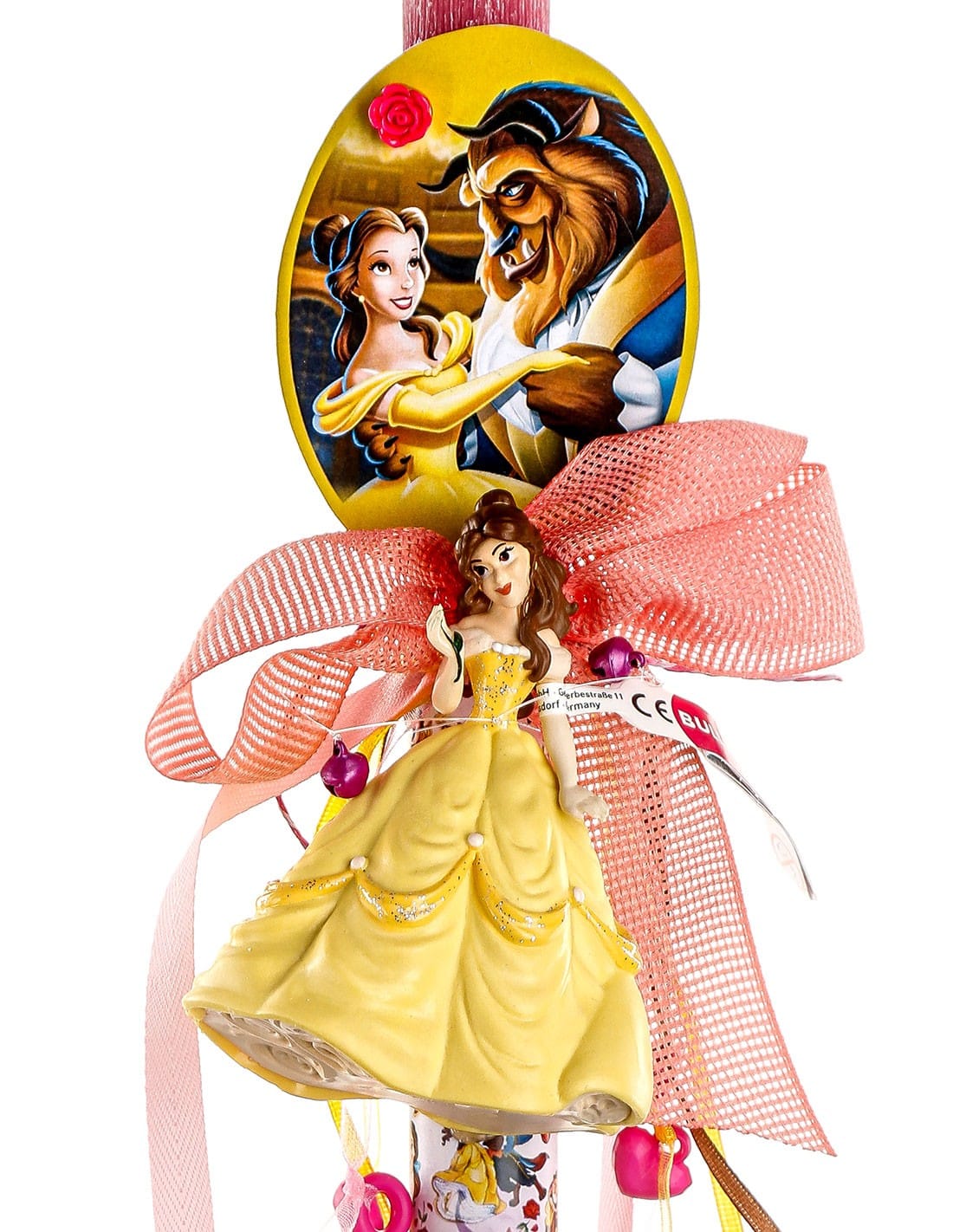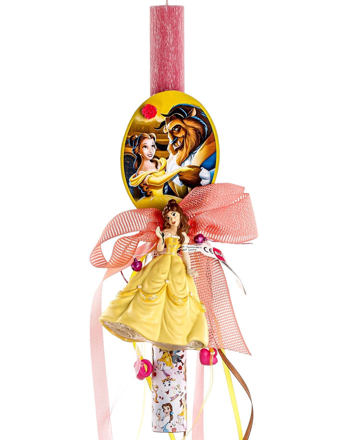 Κομψή κοριτσίστικη αρωματική πασχαλινή λαμπάδα με αυθεντική φιγούρα της Πεντάμορφης, εμπνευσμένη από την κλασική ταινία «Η Πεντάμορφη και το Τέρας».