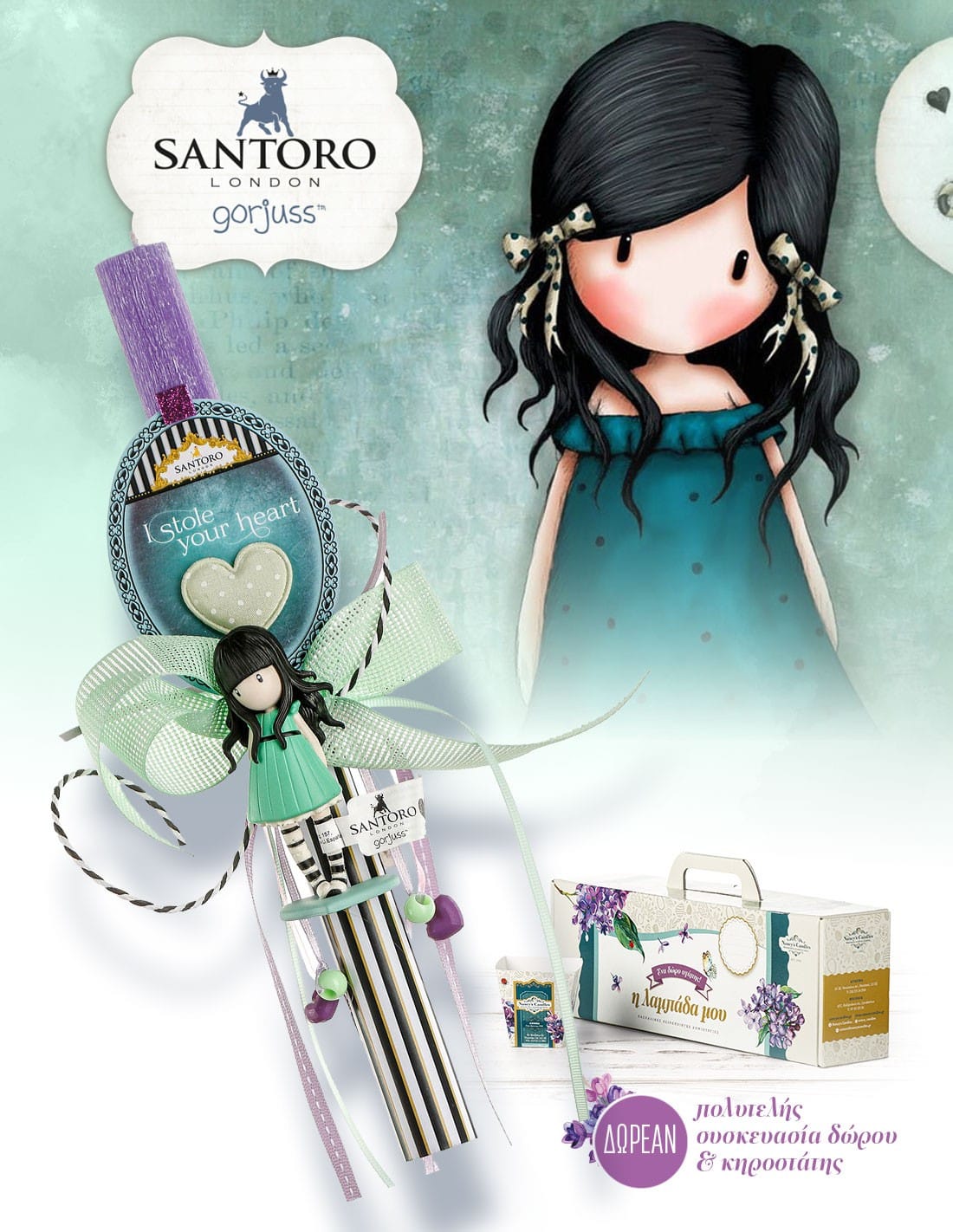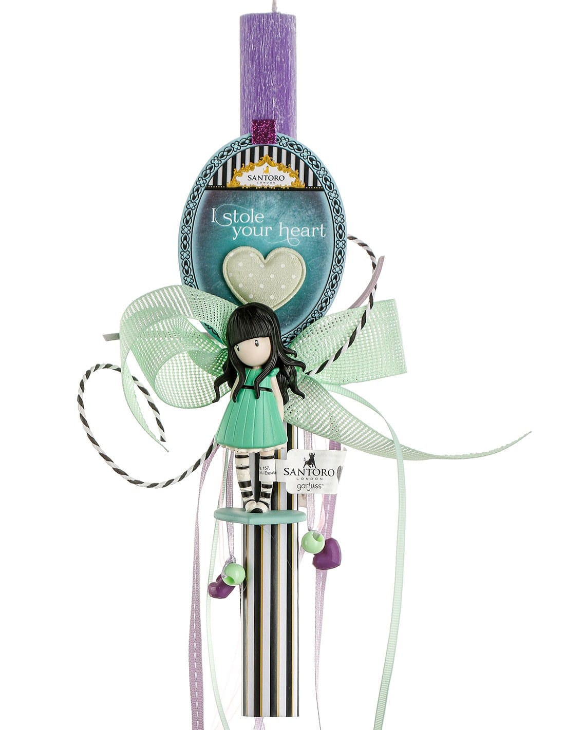 Κοριτσίστικη αρωματική πασχαλινή λαμπάδα με αυθεντική φιγούρα Santoro “I stole your heart”