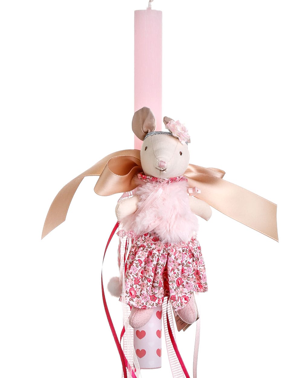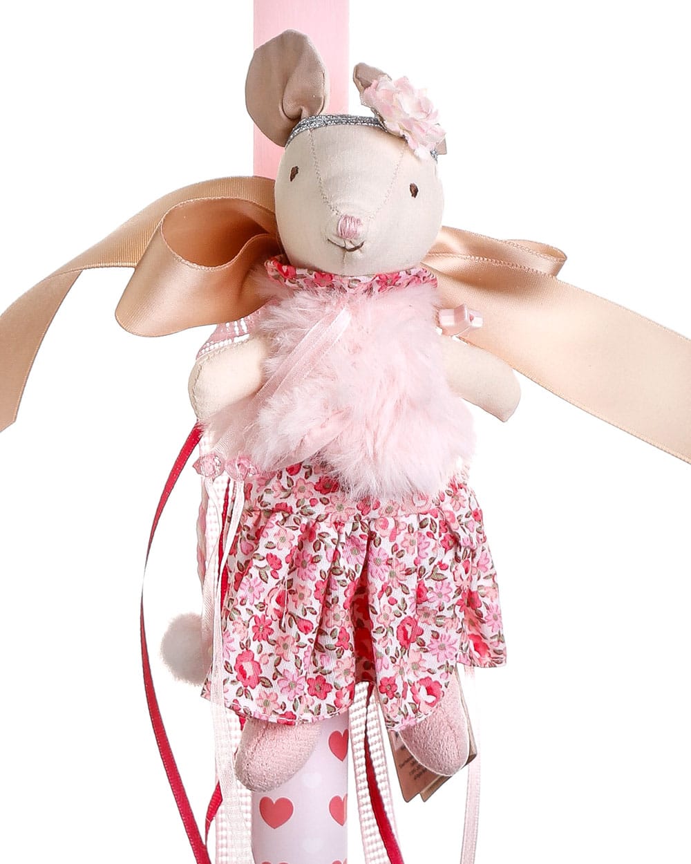 • Γλυκιά κοριτσίστικη αρωματική πασχαλινή λαμπάδα με χαριτωμένη ποντικούλα, διακοσμημένη με όμορφες κορδέλες και στολίδια, ιδανική για ένα τρυφερό και ξεχωριστό πασχαλινό δώρο.
