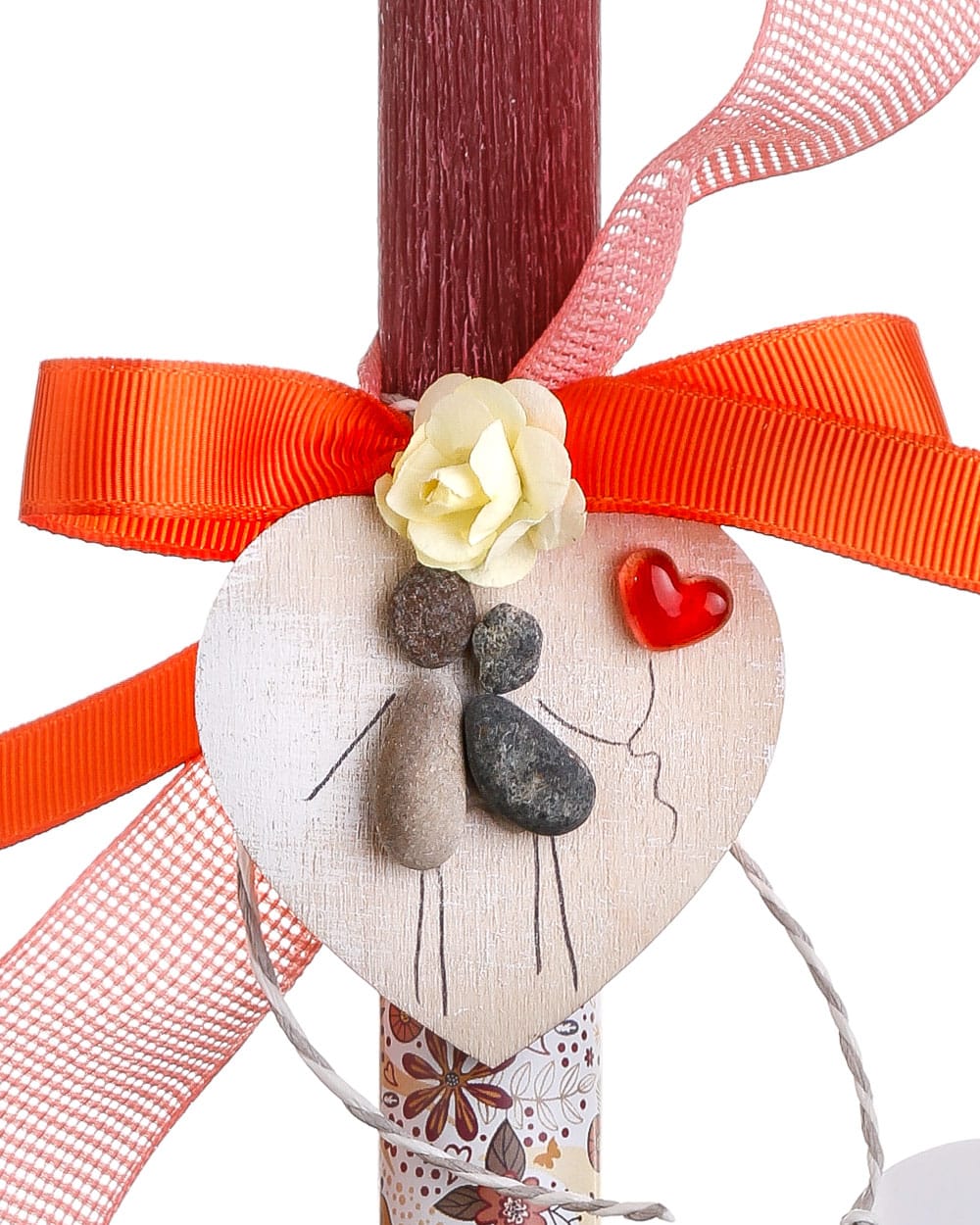 Πασχαλινή λαμπάδα με χειροποίητο μαγνητάκι από ξύλο και βοτσαλάκια