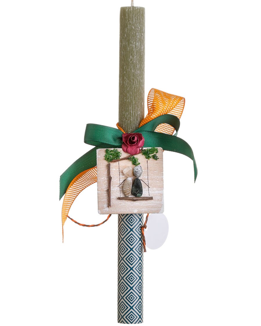 • Στολίζεται με μαγνητάκι από ξύλο και βοτσαλάκια, ζωγραφισμένο στο χέρι, ένα ξεχωριστό χειροποίητο στοιχείο που δίνει χαρακτήρα στη λαμπάδα.