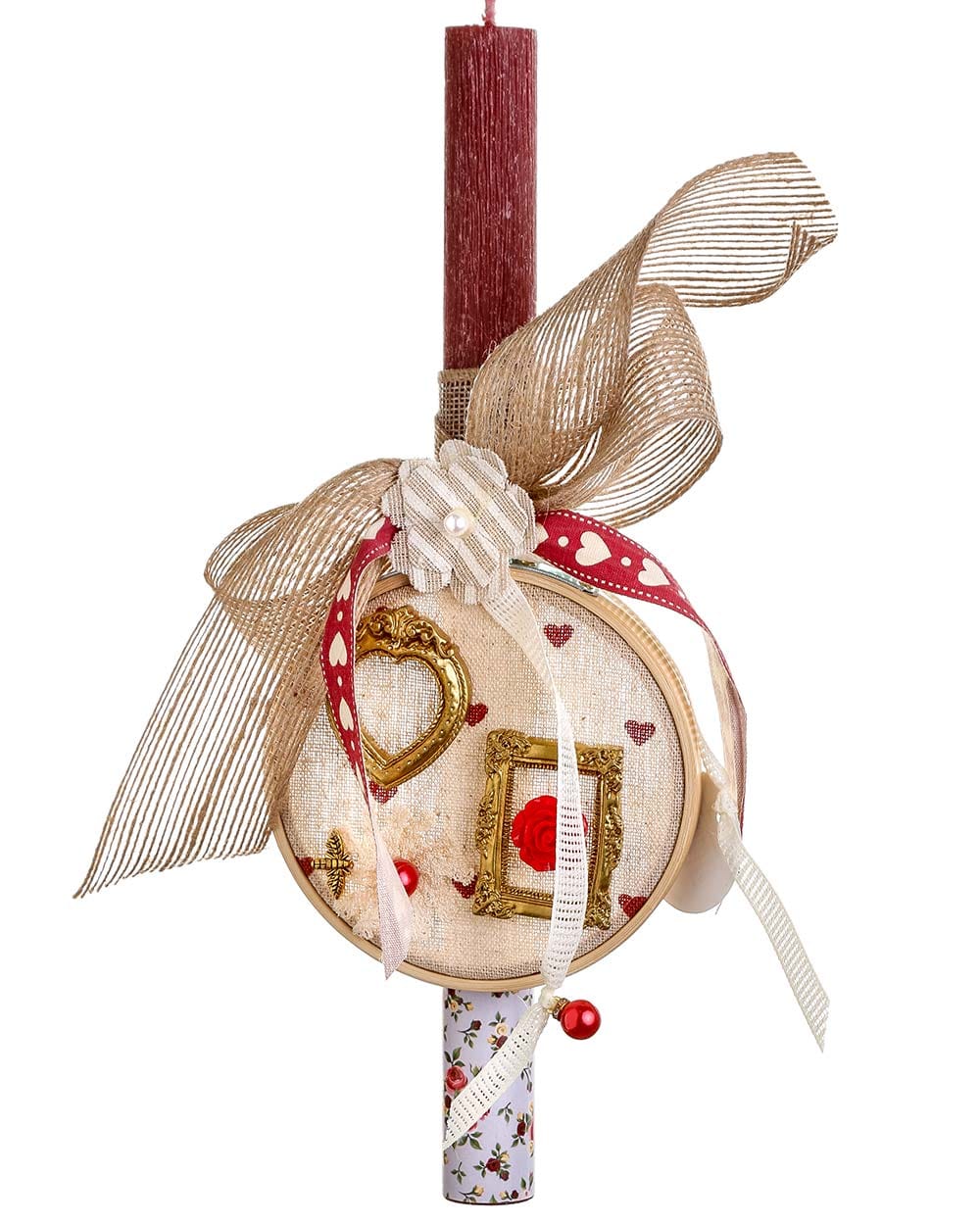 Ρομαντική λαμπάδα με ρετρό τελαράκι κεντήματος