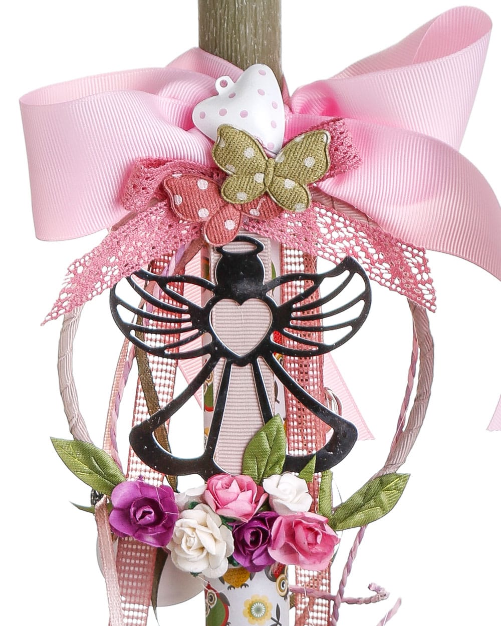 Ρομαντική λαμπάδα με στεφανάκι και αγγελάκι