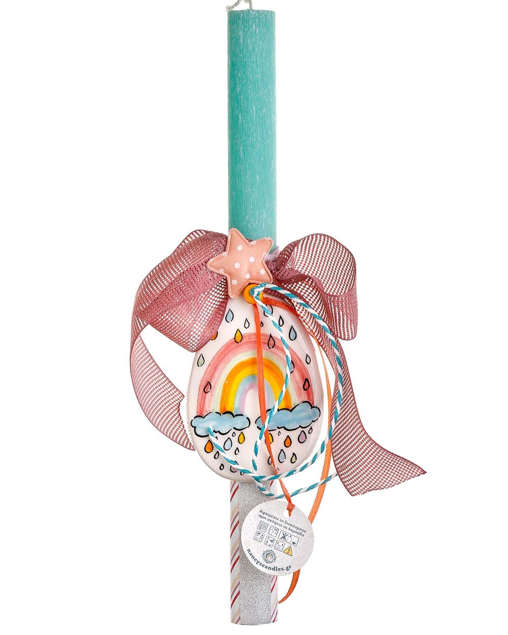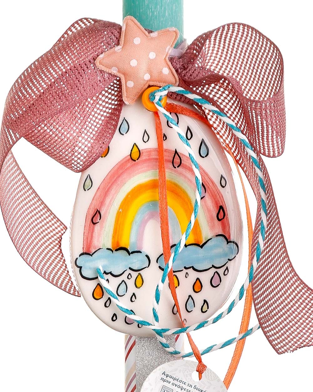Χειροποίητη πασχαλινή λαμπάδα με κεραμικό αυγό – ουράνιο τόξο (2)