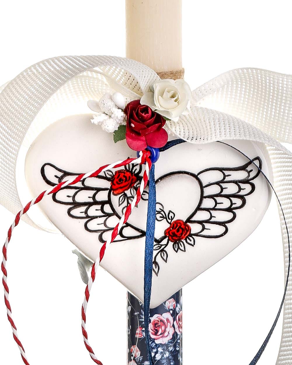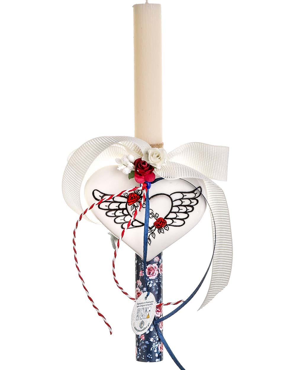 Χειροποίητη πασχαλινή λαμπάδα με κεραμική καρδιά – καρδιά με φτερά