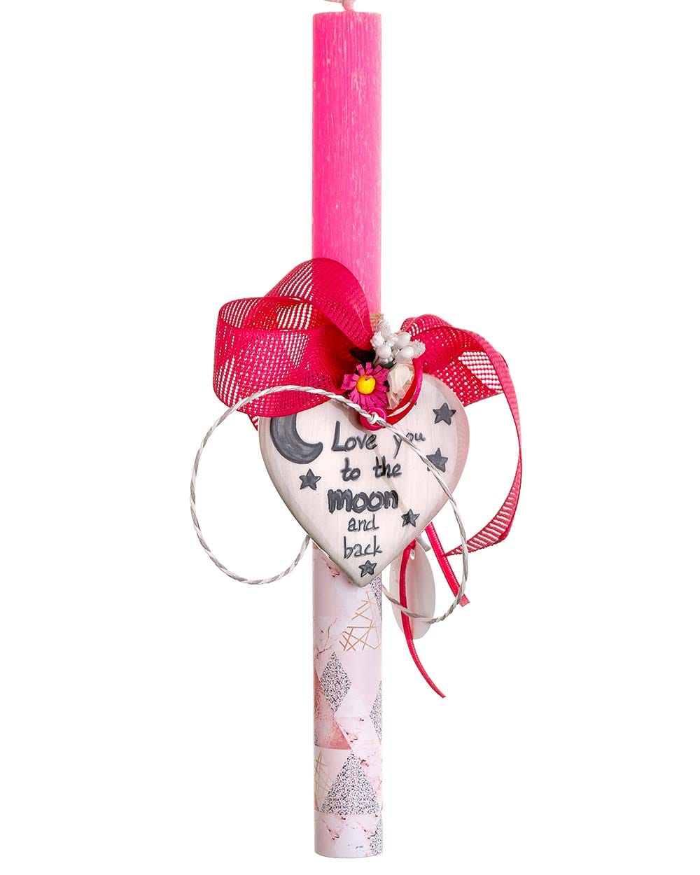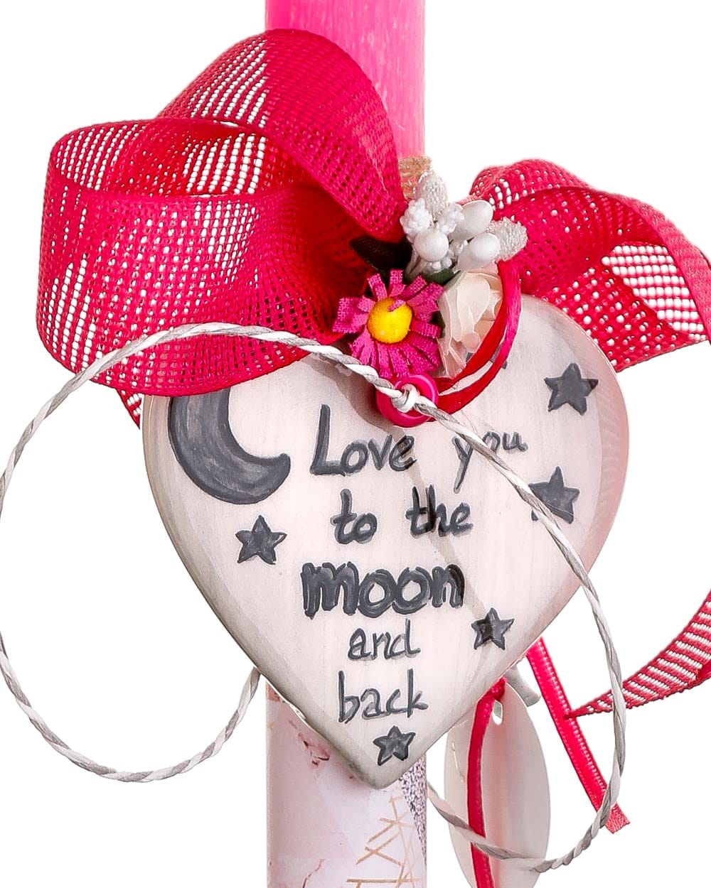 Χειροποίητη πασχαλινή λαμπάδα με κεραμική καρδιά – I love you to the moon and back