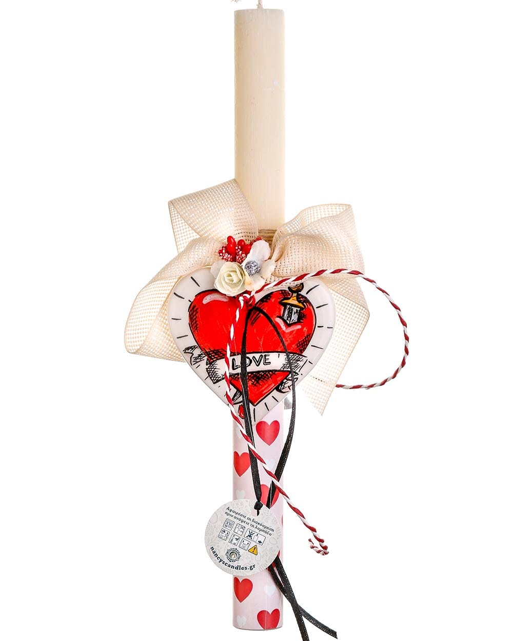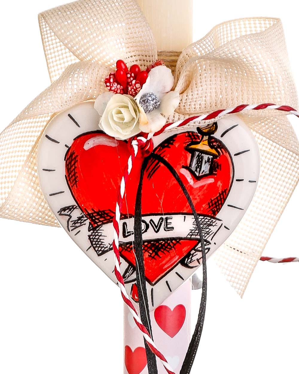 Χειροποίητη πασχαλινή λαμπάδα με κεραμική καρδιά – Κόκκινη καρδιά