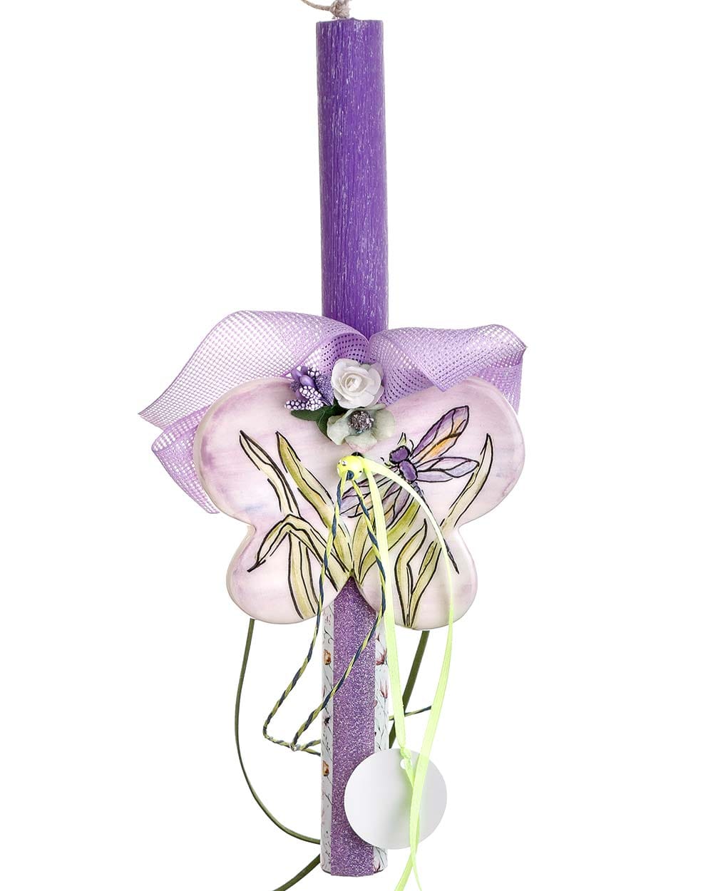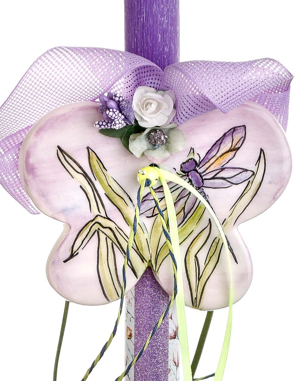 Χειροποίητη πασχαλινή λαμπάδα με κεραμική πεταλούδα – λιβελούλα