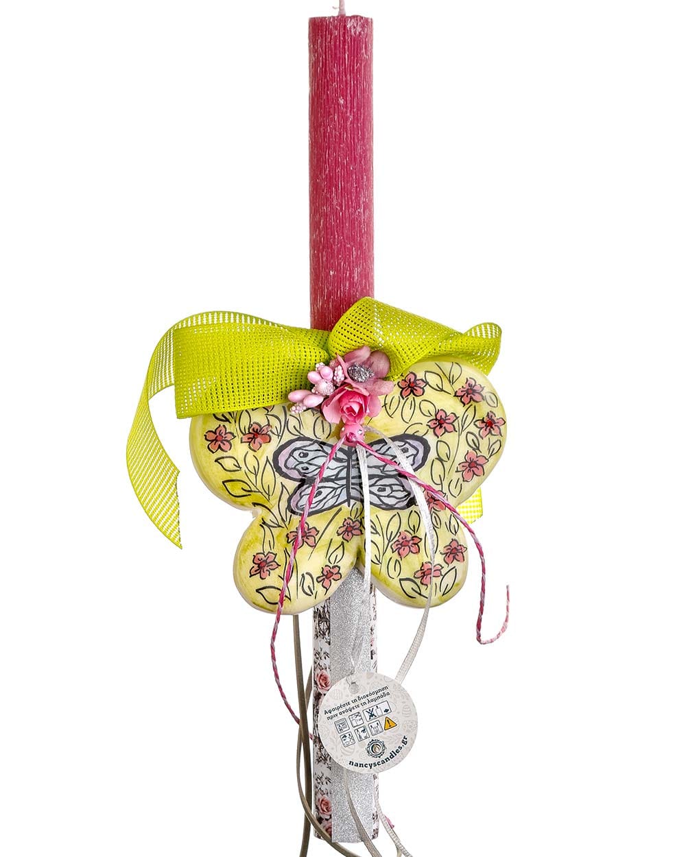 Πασχαλινή λαμπάδα με κεραμική πεταλούδα ζωγραφισμένη στο χέρι