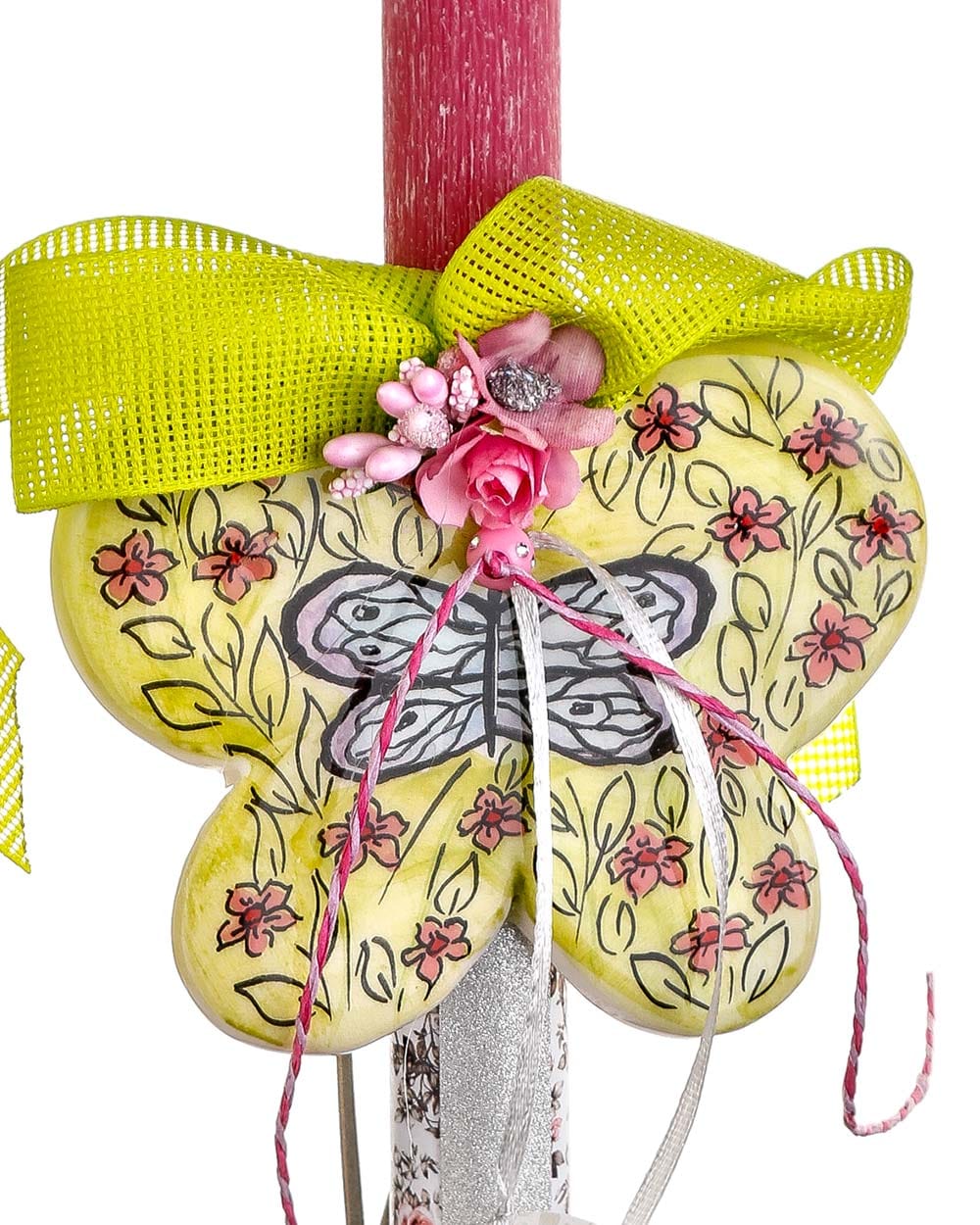 Χειροποίητη πασχαλινή λαμπάδα με κεραμική πεταλούδα – πράσινος κήπος