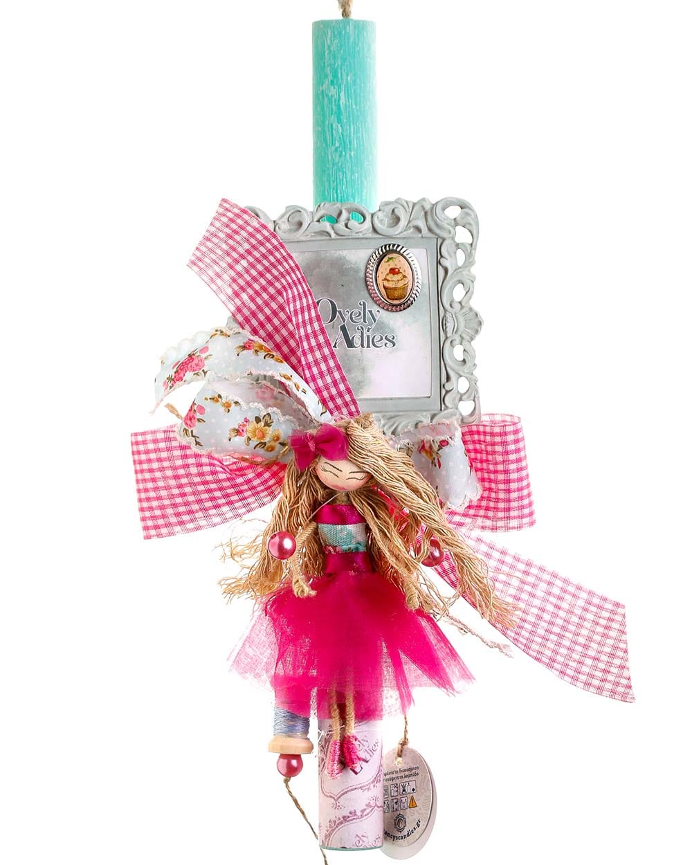 Χειροποίητη πασχαλινή λαμπάδα διακοσμημένη με μοναδική κουκλίτσα από κλωστές,