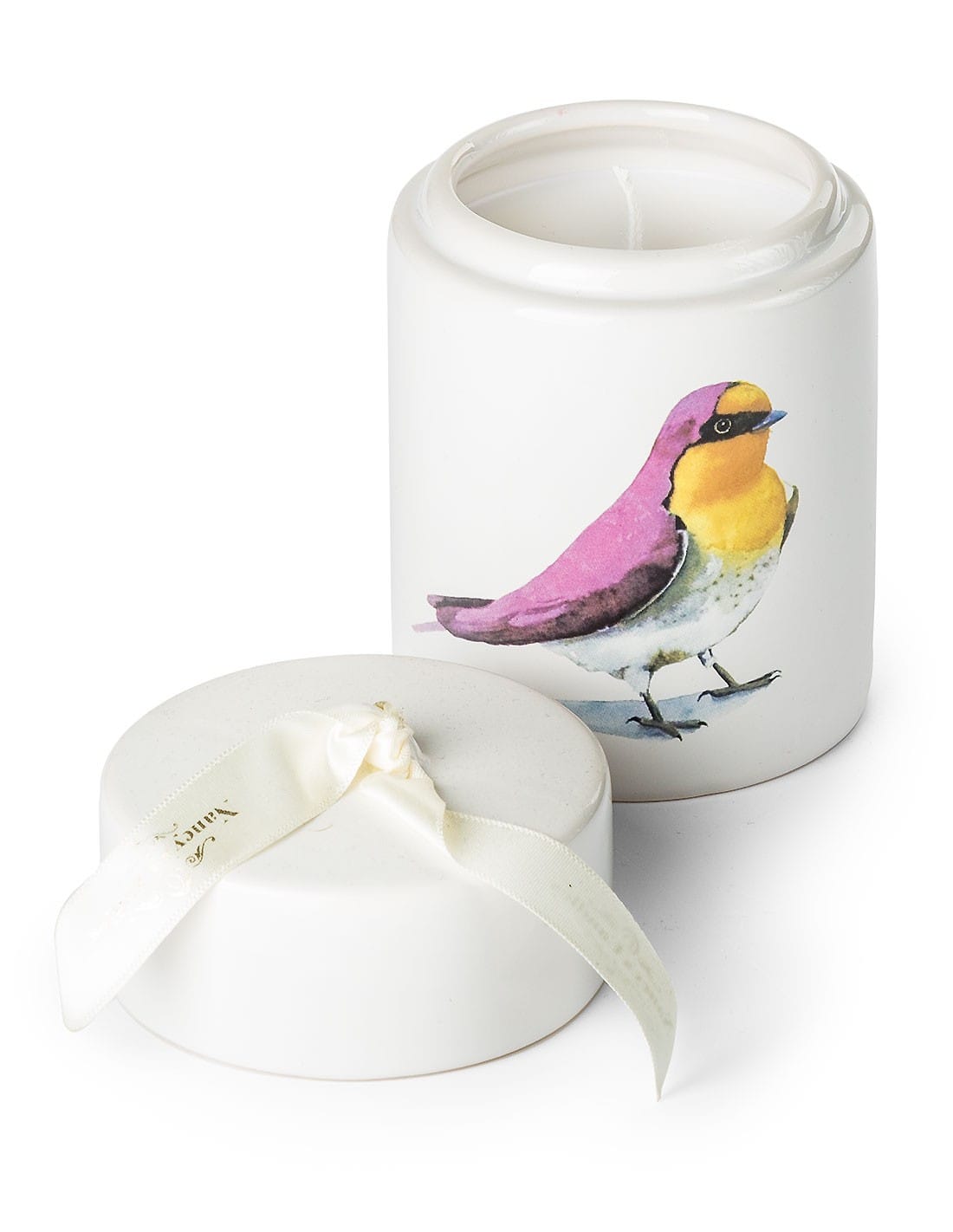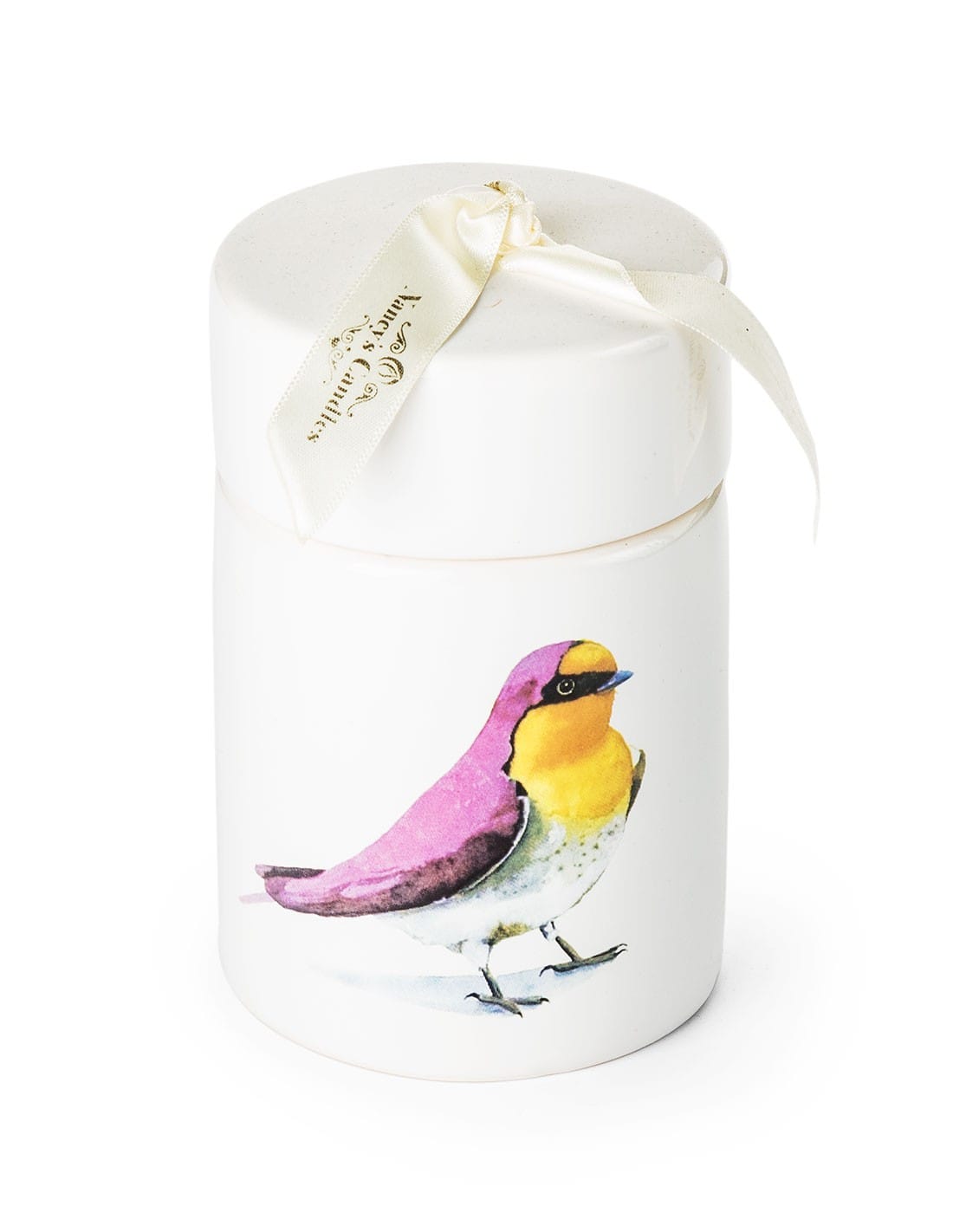 Πορσελάνινο κυλινδρικό κουτί με φούξια πουλί και αρωματικό φυτικό κερί